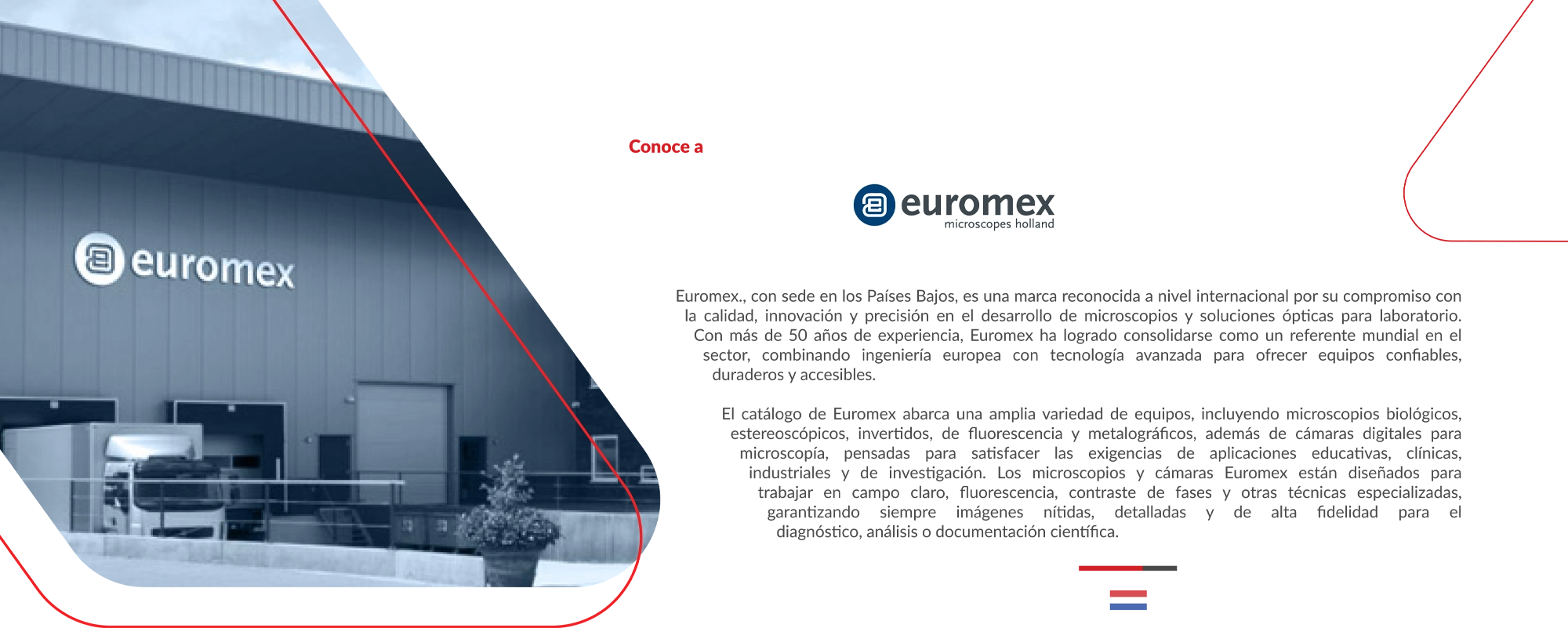 Euromex., con sede en los Países Bajos, es una marca reconocida a nivel internacional por su compromiso con la calidad, innovación y precisión en el desarrollo de microscopios y soluciones ópticas para laboratorio. Con más de 50 años de experiencia, Euromex ha logrado consolidarse como un referente mundial en el sector, combinando ingeniería europea con tecnología avanzada para ofrecer equipos confiables, duraderos y accesibles.