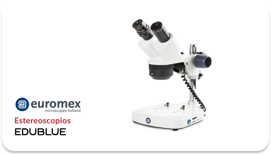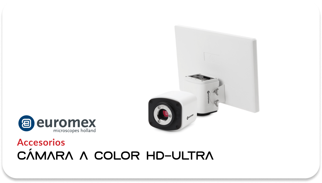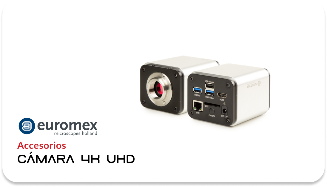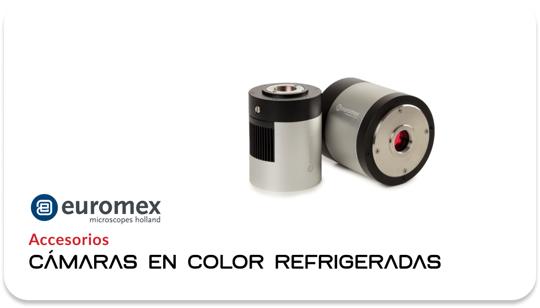 El catálogo de Euromex abarca una amplia variedad de equipos, incluyendo microscopios biológicos, estereoscópicos, invertidos, de fluorescencia y metalográficos, además de cámaras digitales para microscopía, pensadas para satisfacer las exigencias de aplicaciones educativas, clínicas, industriales y de investigación. Los microscopios y cámaras Euromex están diseñados para trabajar en campo claro, fluorescencia, contraste de fases y otras técnicas especializadas, garantizando siempre imágenes nítidas, detalladas y de alta fidelidad para el diagnóstico, análisis o documentación científica.